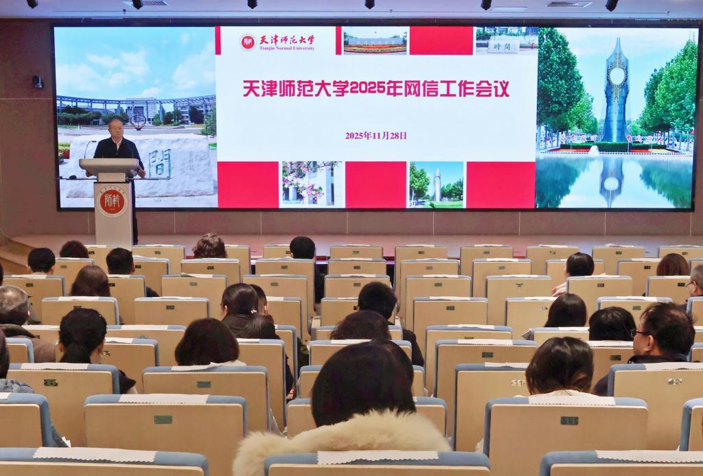 本站讯(通讯员 杨朋)11月28日上午,学校在京津冀教师发展协同创新中心树人厅召开2025年网信工作会议。校党委常委、副校长白学军出席会议并讲话,各单位网信工作分管领导、网站和新媒体管理员(信息员)参会。会议由网络安全和信息化办公室主任赵子平主持。