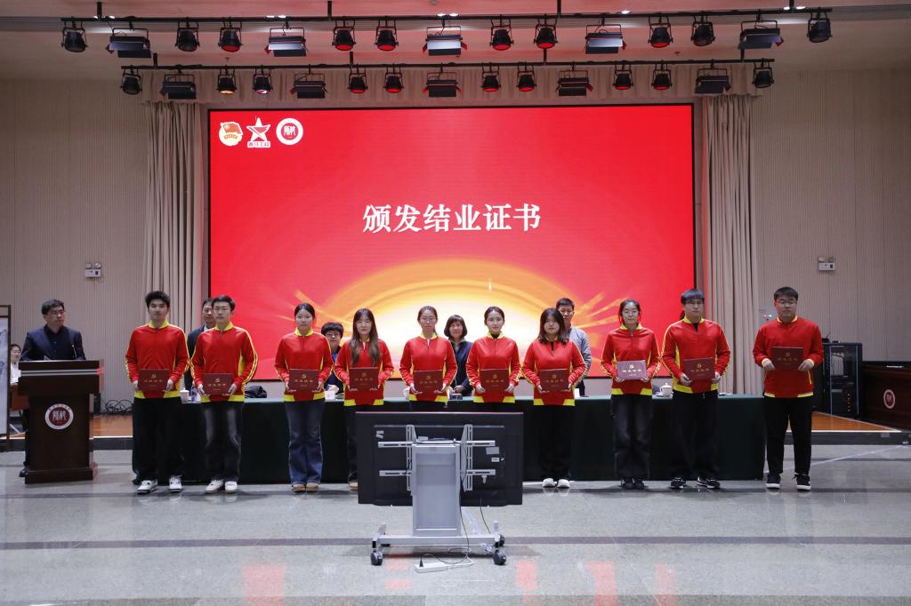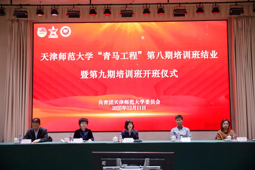 仪式上,校团委对第八期培训班工作情况进行了系统总结,2025年度全国“青马工程”高校班学员曹楷雯、天津市“青马工程”第八期高校班学员宋如清、校级“青马工程”第八期培训班学员赵小涵进行了学习成果汇报交流,与会领导向第八期培训班学员代表颁发了结业证书。