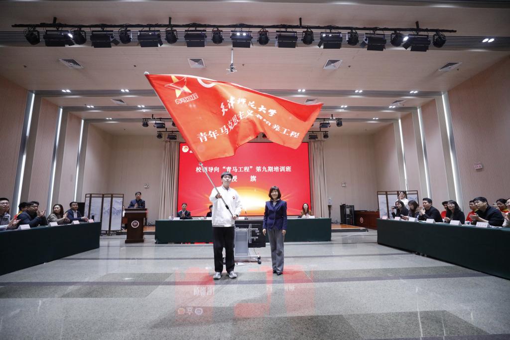 本站讯(通讯员 武梦玮)为持续巩固深化“青年马克思主义者培养工程”育人成效,着力培养政治坚定、素质优良、能力突出的青年马克思主义者,12月11日下午,艾弗森贝博ballbet官网校级“青马工程”第八期培训班结业暨第九期培训班开班仪式在会议中心多功能厅举行。校党委副书记董洪霞为第九期培训班授旗并讲话,校“青马工程”工作领导小组成员单位相关负责人、各学部(院)团委书记及校级“青马工程”学员代表150余人参加了活动。