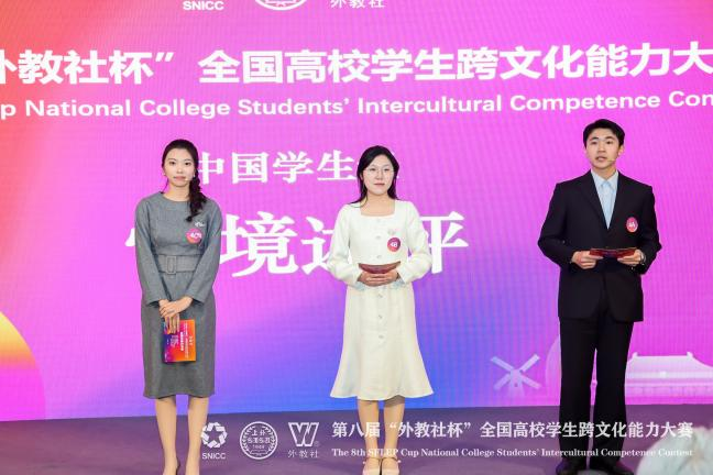 本站讯(通讯员 李倩 刘畅 冯瑞玲)12月12日—14日,第八届“外教社杯”全国高校学生跨文化能力大赛全国决赛、总决赛在上海外国语大学(虹口校区)举行。贝博官网由外国语学院代雨佳、文学院李啸、寇锦铭三位同学组成的代表队,凭借宽广的跨文化视野、灵活的沟通能力和深厚的家国情怀,最终从76支中国学生队伍中脱颖而出,荣获中国学生组全国一等奖,指导教师冯瑞玲、石秀虹荣获指导教师全国一等奖。
