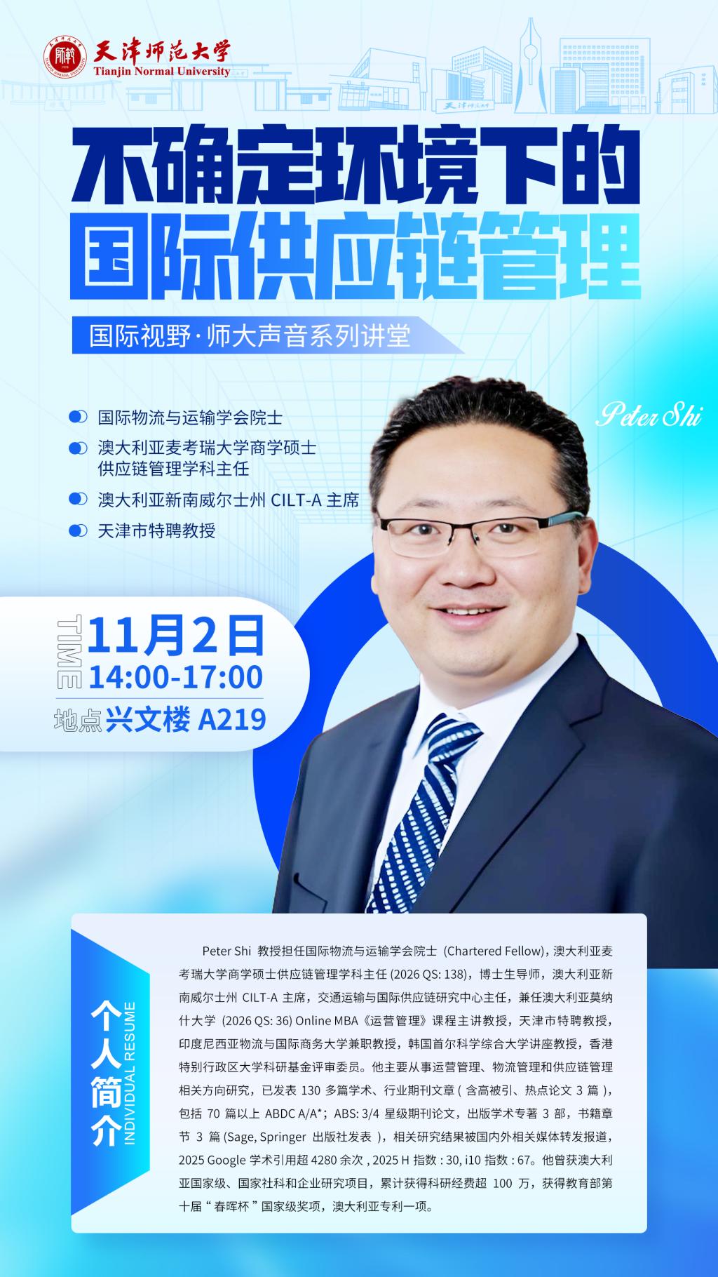 【预告】全球视野·师大声音系列讲堂第5讲——不确定环境下的国际供应链管理