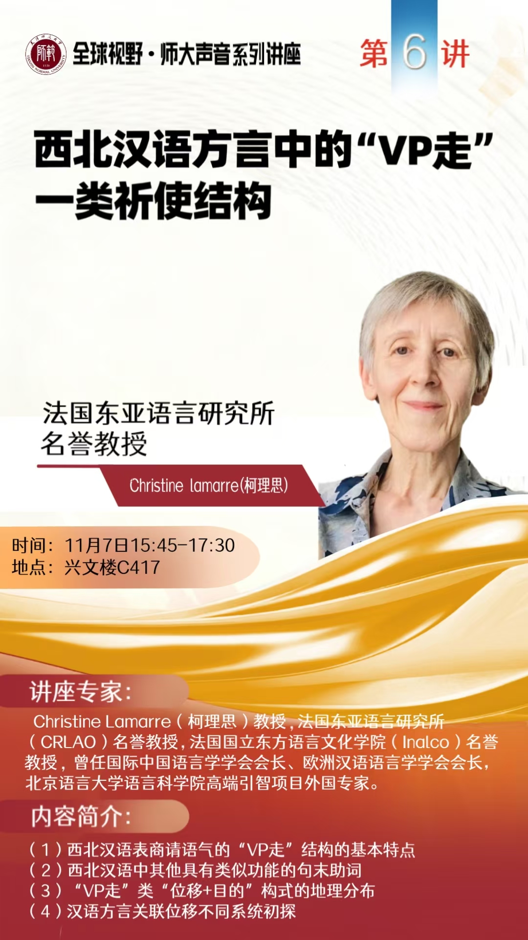 【预告】全球视野·师大声音系列讲堂第6讲——西北汉语方言中的“VP走”一类祈使结构