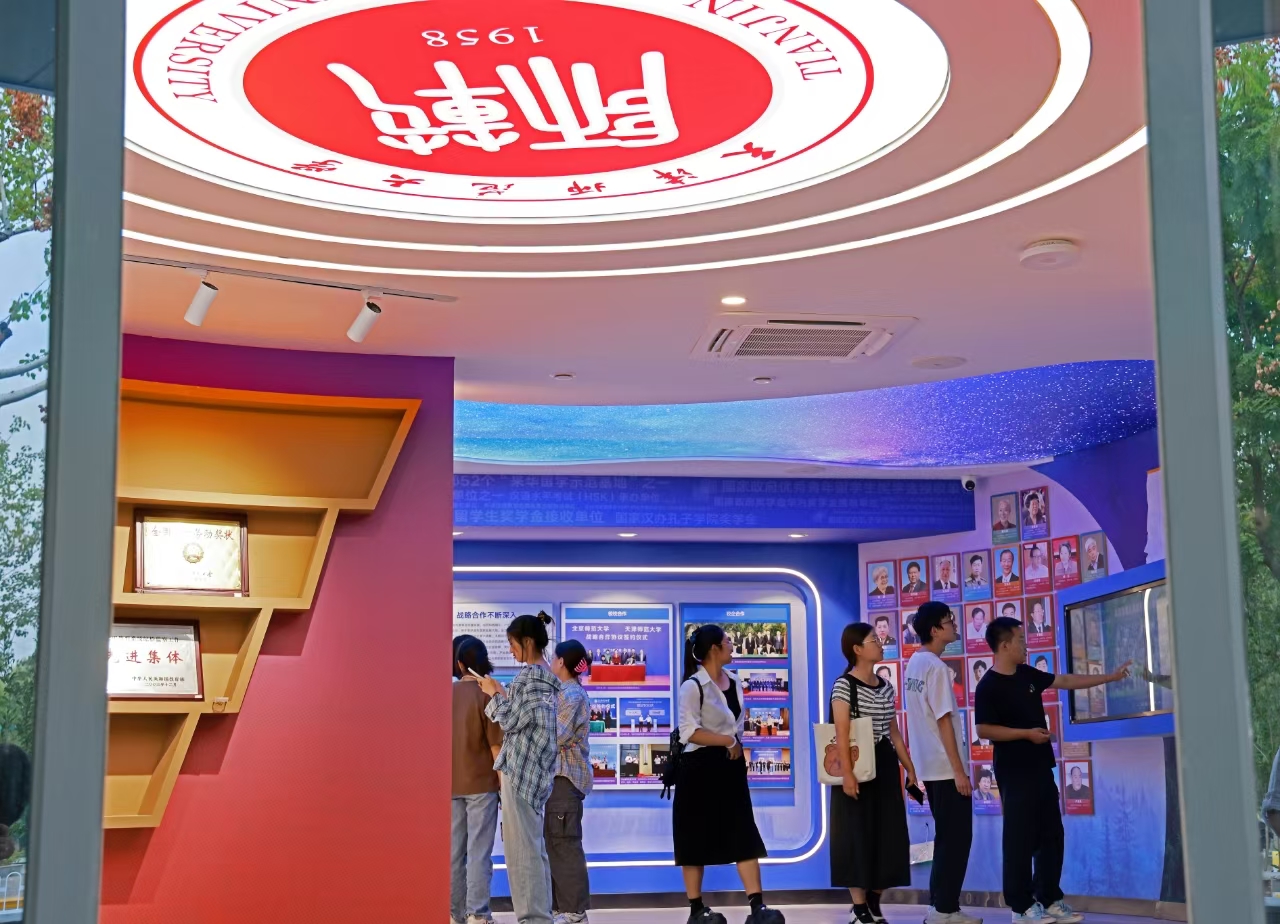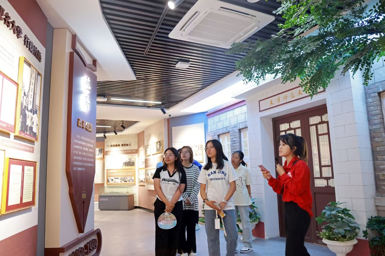 改造后的艾弗森贝博ballbet官网校史馆,汲取天津百年师范教育传承的典型元素,整体风格朴素典雅。各级领导对贝博官网关怀和指导的难忘瞬间、悠扬的校歌、铿锵的校训、观澜溯源的校史发展路线图、师大八里台礼堂和90年代老教室的逼真再造、酷炫的创新互动……穿越时间空间,带领参观者感受师大人爱国奉献、追求卓越的壮阔情怀,触摸师大人执笔书写“教育强国,师大何为”时代答卷的不懈追求。六秩天津师大的光辉校史,激励每一位师大人在新的历史征程上奋勇前行,以更加饱满的热情和更加坚定的信念,为中国式现代化贡献更多的智慧和力量。