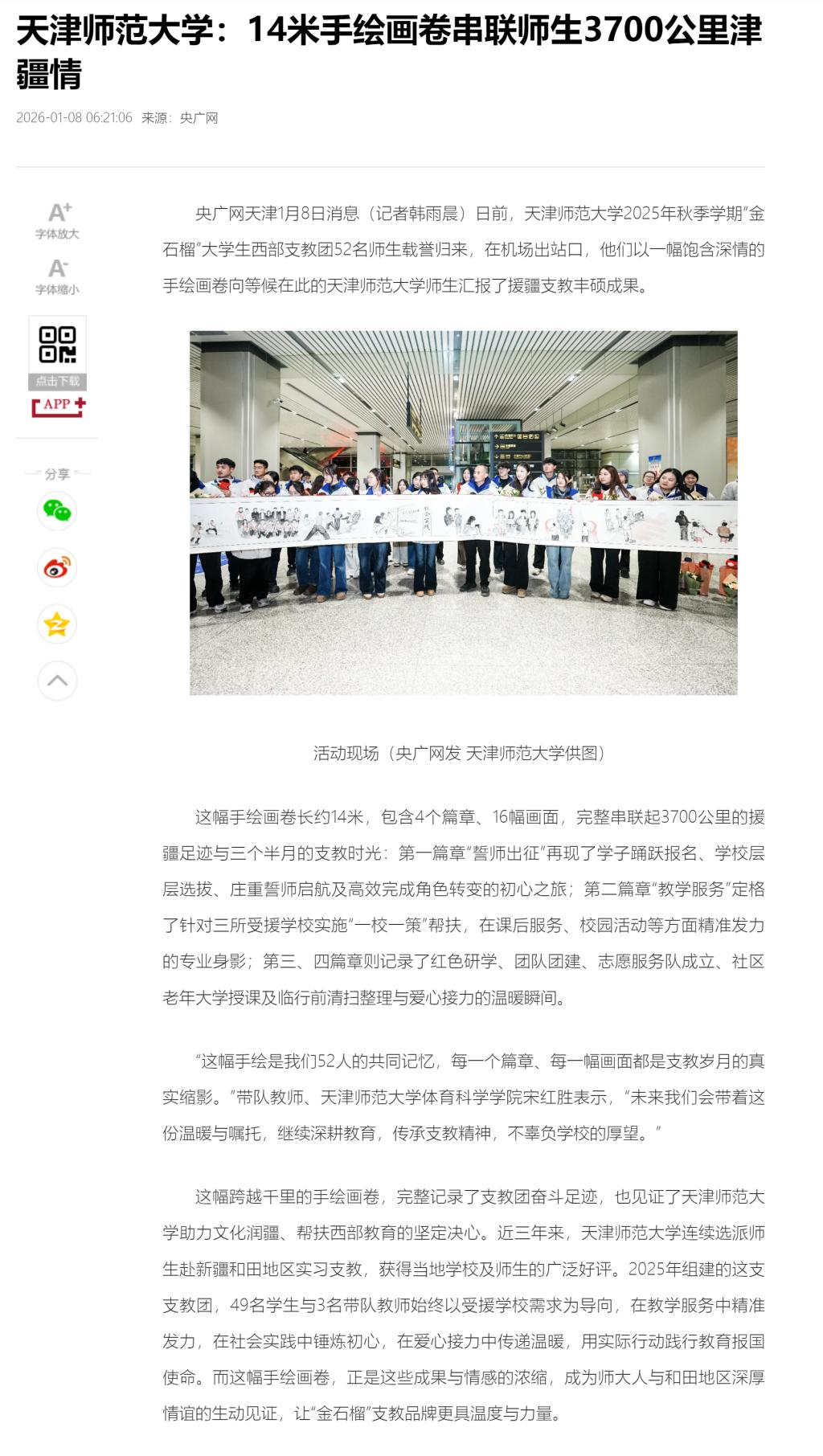 央广网 | 艾弗森贝博ballbet官网:14米手绘画卷串联师生3700公里津疆情