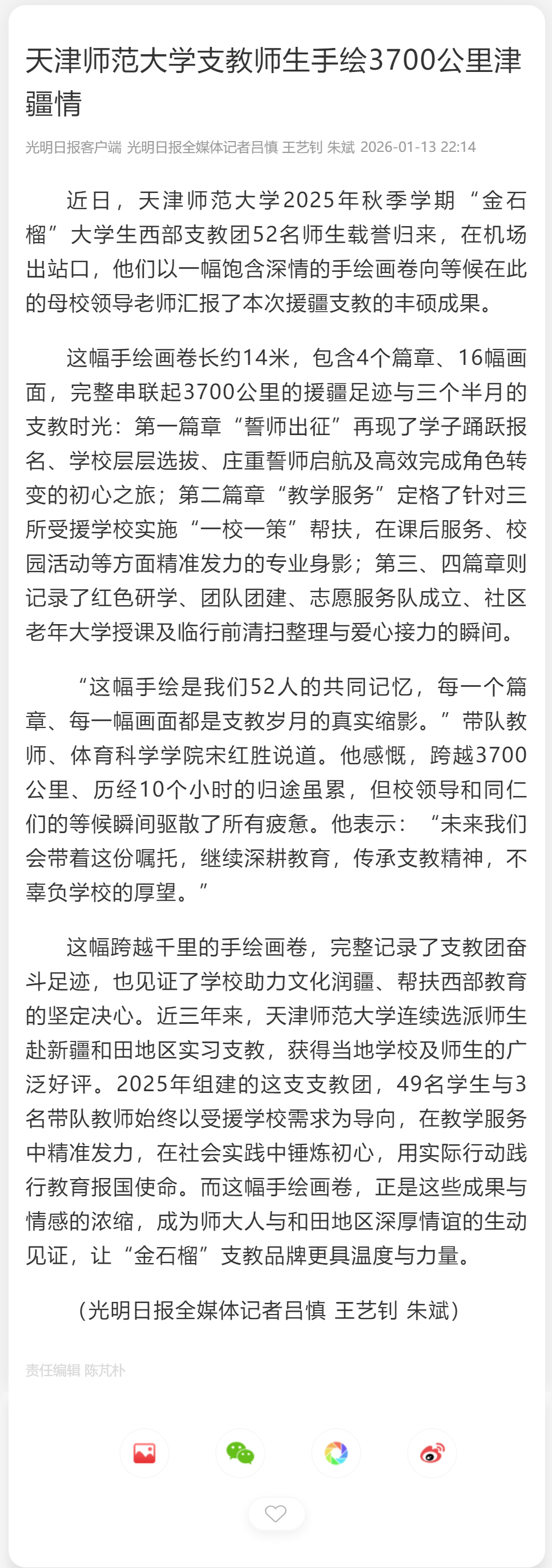 光明日报客户端 | 艾弗森贝博ballbet官网支教师生手绘3700公里津疆情