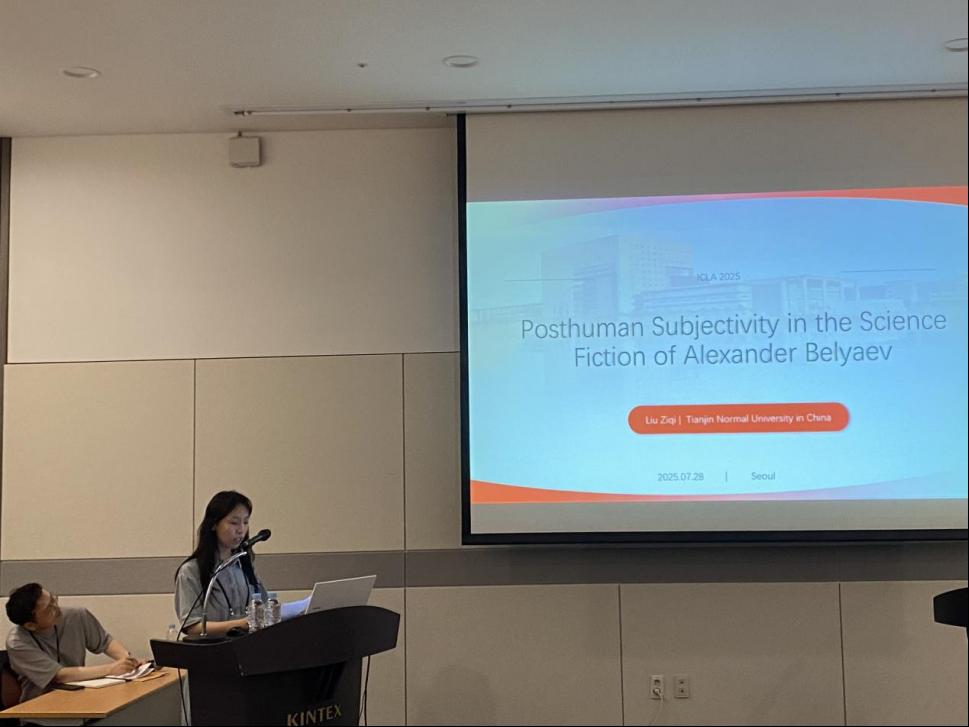 刘子琪为文学院比较文学与世界文学专业博士生,作为受邀代表参与了分论坛“Misreading the East”(误读东方)第一场,并做学术报告“On Posthuman Subjectivity in Belyaev”(《论别利亚耶夫科幻小说中的后人类主体性》)。该英文演讲基于刘子琪主持的学校研究生科研创新项目“论别利亚耶夫科幻小说中的现代性反思”,将后人类主人公的技术具身视作主体性的一种极端追求,面对后人类的身份认同危机,认为或死或消的悲剧结局是主体性在存在论层面遭遇的终极悖论,并在后人类理论的视域下提出以游牧和共生的路径来重建技术时代的主体性。