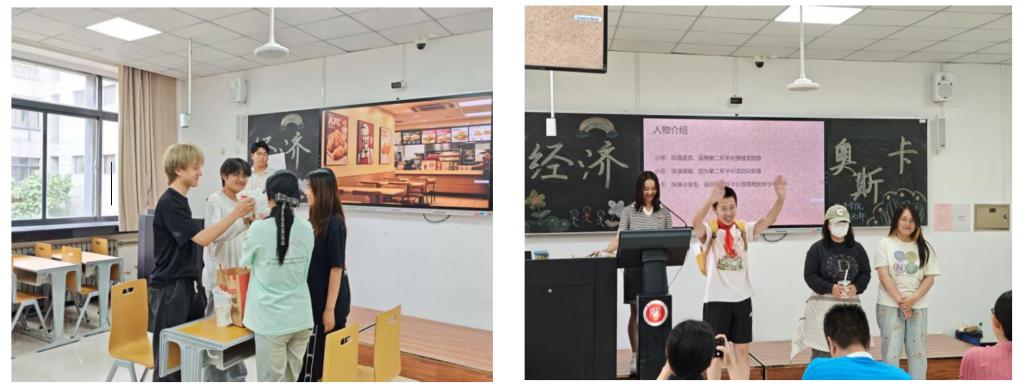 在评审环节,教师马瑜与孙伯驰对参赛团队的表现进行专业点评。两位导师高度赞赏同学们创新性地运用情景剧形式,将复杂的经济文化概念转化为生动的可视化表达,认为这不仅充分展现了扎实的专业素养,更体现了将理论融于实践、知行合一的能力。同时,他们提出建设性建议,为同学们接下来的学业发展指明方向。