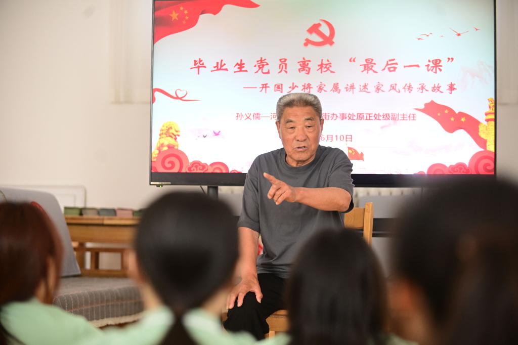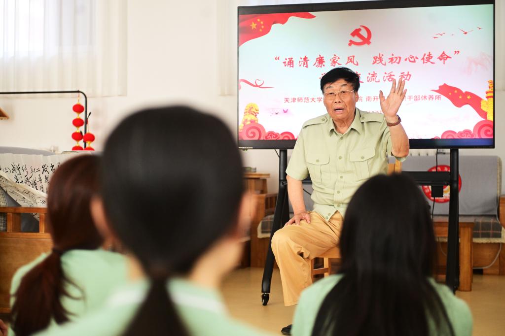 “我是你们的老学长,我是1961年7月毕业于天津师范学院中文系的。”退休军职老干部向同学们讲述了从校园走向革命战场的红色故事,他向即将毕业走向社会的同学们深情寄语,一是希望同学们能够珍惜在校时光打磨过硬本领,二是希望全体同学以“勤奋严谨 自树树人”的校训时刻要求自我,擦亮一名师大人的奋斗底色,三是希望大家能够成为一专多能的人才,为建设社会主义现代化强国添砖加瓦。