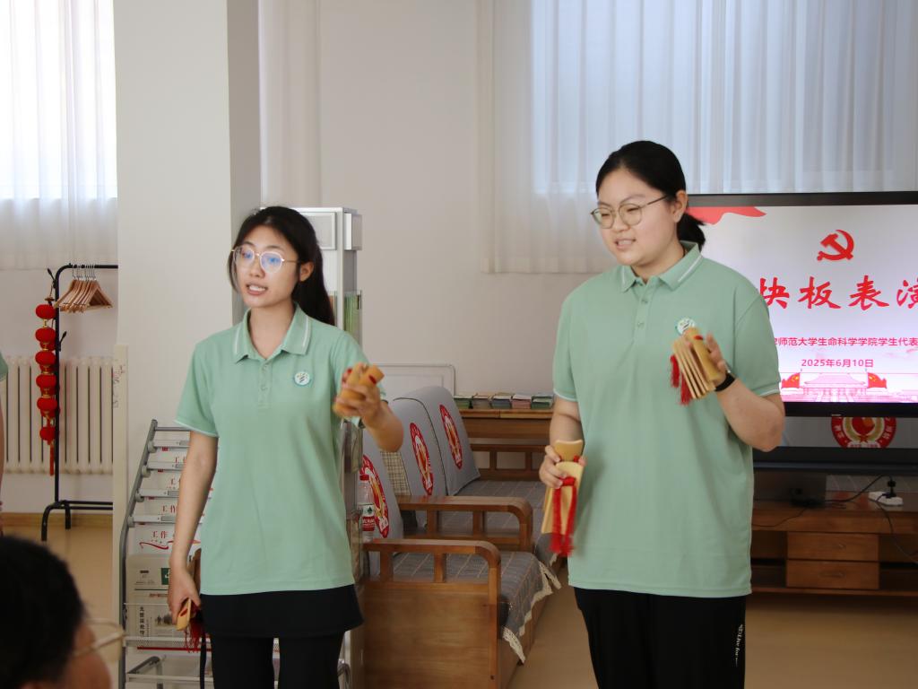 随后党员们与老同志共同诵读七律诗篇《长征》,以诗词话廉,弘扬廉洁家风,砥砺初心使命。毕业生党员许慕蘭感悟:“从将军家风到新时代党员准则,本质上都是对初心的坚守。”活动现场,学生代表为老同志们表演了快板、送去了真挚的祝福和慰问,并向他们敬献了亲手制作的蝴蝶标本,致以崇高敬意。