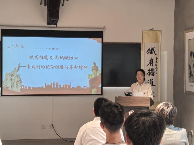 北洋法政学堂是中国近代第一所全日制法政专门学校,是李大钊政治活动的起点和重要阵地。师生参观了“铁肩担道义,热血润山河——李大钊与天津主题陈列”,结合珍贵文物和影像资料,深入了解李大钊在天津早期革命运动中的历史贡献,感悟李大钊的革命思想、崇高精神和伟大人格。参观结束后,学生党员的《铁肩担道义 赤诚映初心》微党课展示,深情讲述了李大钊先生的光辉业绩和崇高风范,号召青年党员在新时代的答卷上,书写无愧于党和人民的壮丽篇章。四名党员以《青春》之名发出青春倡议,他们铿锵有力的声音传递出新时代青年的责任与担当。