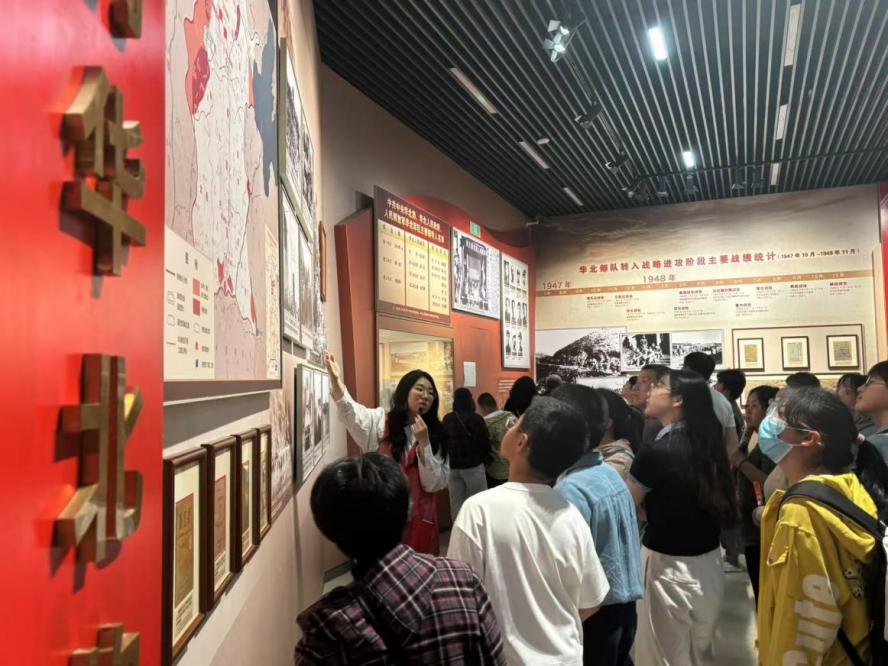 在五四青年节来临之际,历史文化学院团委共选派5位优秀青年学子分别于4月26日—5月5日期间赴平津战役纪念馆开展志愿讲解,参加主题座谈会。5位志愿者以红色精神为引领,将专业学识融入生动讲解中,以"青年视角"讲述平津战役历史,结合文物、影像和文献资料,将战略部署、军事思想、英雄事迹、军民同心等逐一讲述,参观者不时点头回应,红色精神和革命火种就在这一讲一听一思考一回应中传递。青年学子从红色历史的倾听者转变为革命精神的传播者,用实践锻炼深化中国革命战争史教育,展现馆校协同育人优秀成果。
