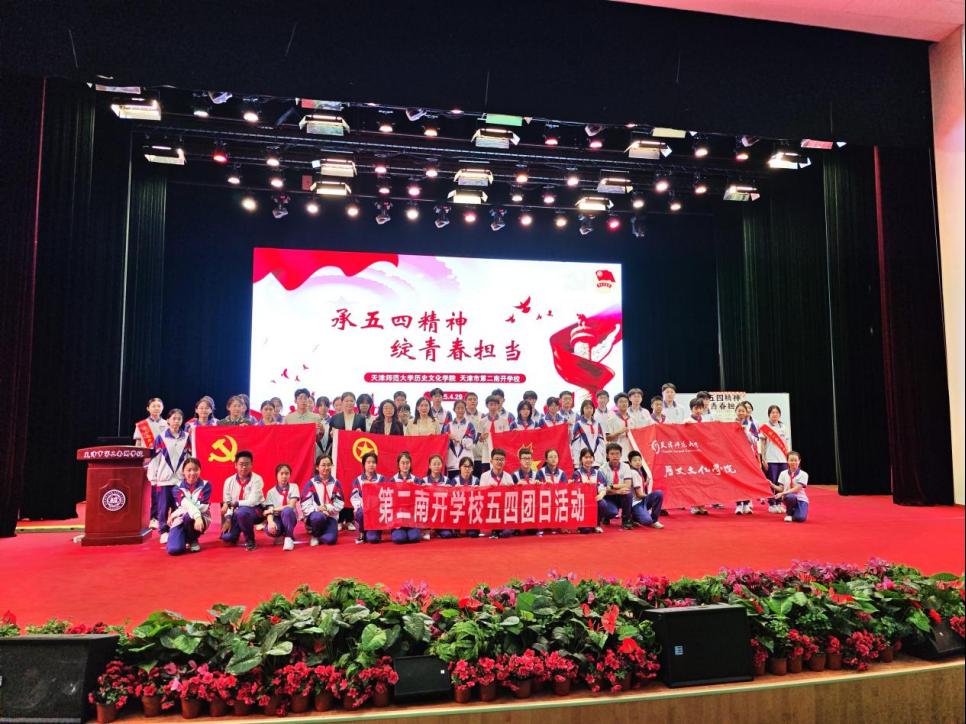 历史文化学院团委将涵养师范生教育家情怀和弘扬“五四精神”相融合,组织多位党团骨干于4月29日走进天津市第二南开学校为少先队员和团员开展思政宣讲。宣讲通过“信仰的光芒”“榜样的力量”“分享与协作”“青春的誓言”四个篇章精彩呈现。来自学院的两位优秀研究生分享青春奋斗故事。赴西部支教,用知识播撒希望的种子;投身军营,用热血书写报国志向。宣讲最后,全体同学铿锵有力的青春誓言回荡在会场,书写出争做时代新人的坚定决心。