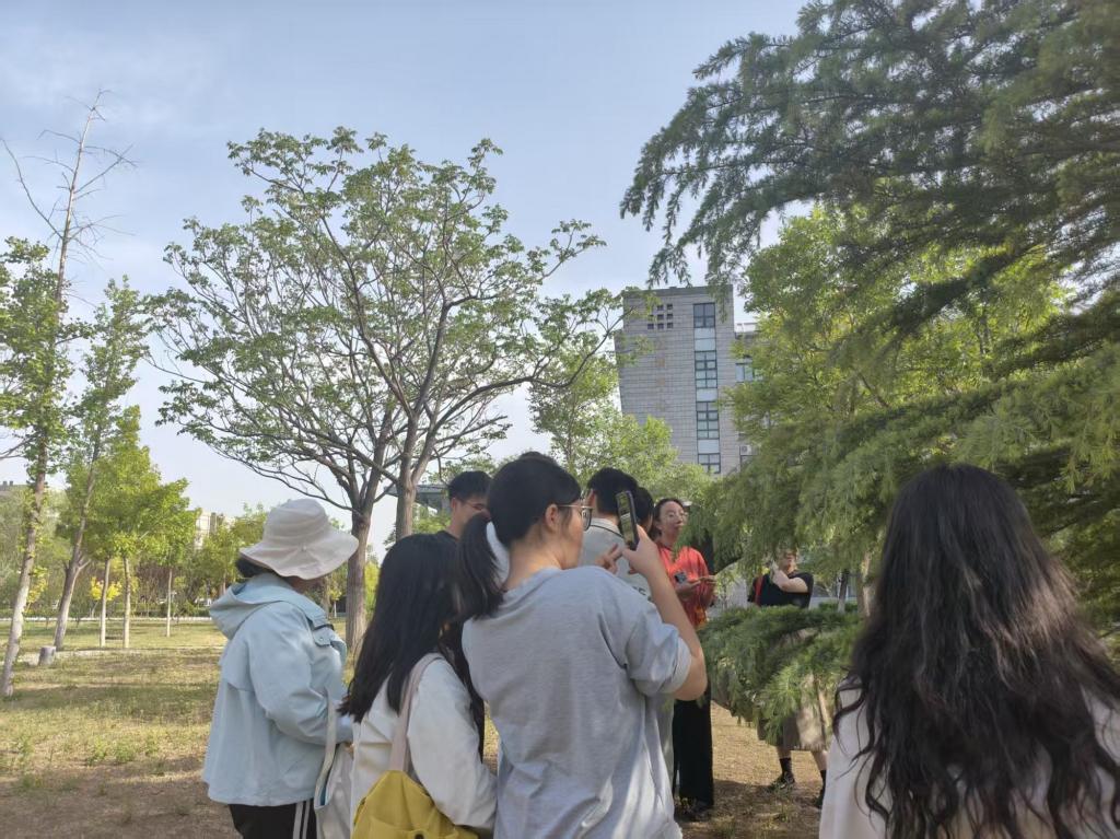 地理学部青年志愿队在校园内为同学们带来了生动的校园植物讲解。志愿者们为同学们深入浅出地讲解了常见物种的鉴别与分布,带领同学们细致地观察了桑葚、山楂、玉兰等多种植物,既展现了地理学科的魅力,也传递了“守护生态、知行合一”的青春担当。