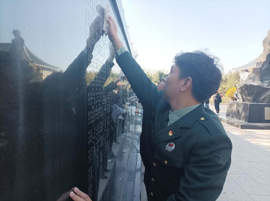 历史文化学院退役大学生士兵贾紫藤表示:“站在雄壮庄严的烈士纪念碑前,我们深刻体会到今天的美好生活是无数革命先烈用鲜血和生命铸就的。作为新时代的青年学子和退役军人,我们必将传承红色基因,永葆军人本色,把对先烈的崇敬之情转化为勤奋学习和保卫祖国的强大动力,绝不让烈士的鲜血白流,用实际行动践行‘请党放心,强国有我’的青春誓言。”