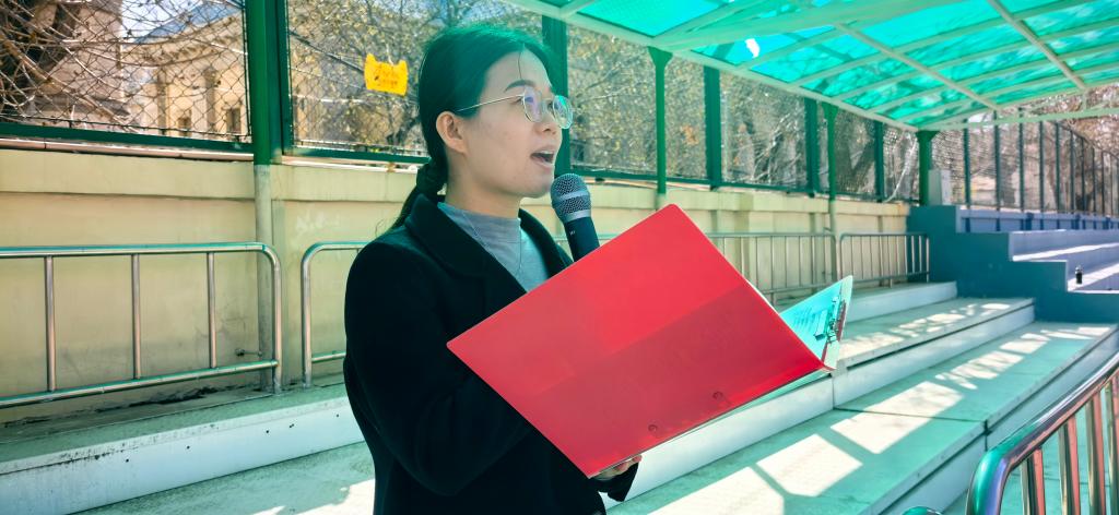 3月24日,新华中学操场上,商沙沙老师在国旗下为现场师生讲授《减缓气候变化,守护冰川,从我做起》思政微课,并向师生发出“生态守护者”的青春号召:冰川消融不是远方的叹息,而是我们触手可及的责任!新疆天山冰芯中1940年的黑碳数据,揭示着工业文明对自然的深远且不可磨灭的影响,而关一盏灯、拧紧水龙头、重复使用笔记本——这些微小的行动,却是我们守护冰川的青春力量!