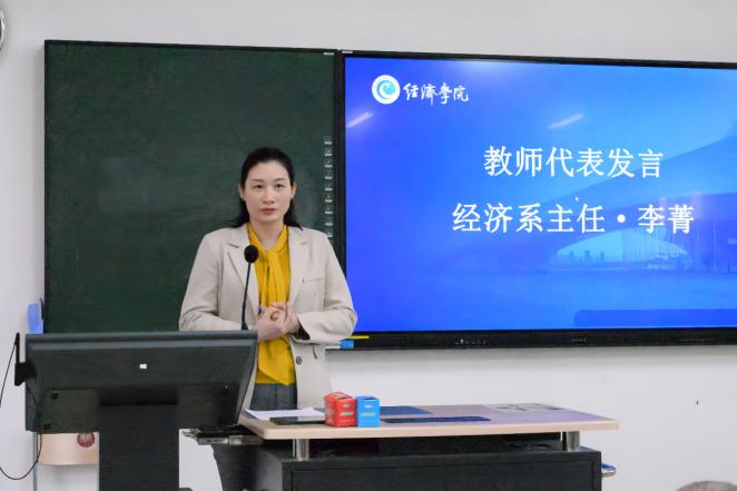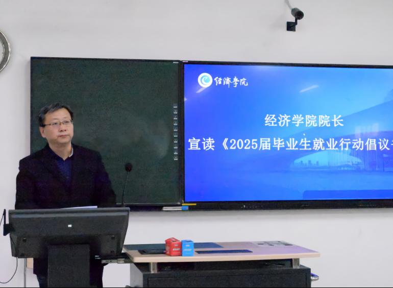 经济学院院长吕景春宣读了《2025届毕业生就业行动倡议书》。他呼吁同学们应以青春之名,做就业赛道的“领跑者”。以客观、冷静态度全面审视自身优势、兴趣和职业目标,用好学院校企合作基地资源,在实践中经受历练,让行动力成为求职的“最强简历”。教师们应以育人为本,做职业启航的“摆渡人”。通过就业形势分析会、行业前沿讲座,帮助学生穿透就业迷雾,建立动态职业认知体系,以企业真实需求倒逼人才培养改革。家长应以亲情为桥,做成长路上的“护航者”。以理解取代焦虑,用赋能替代包办,在求职攻坚期,给予学生情感支撑。
