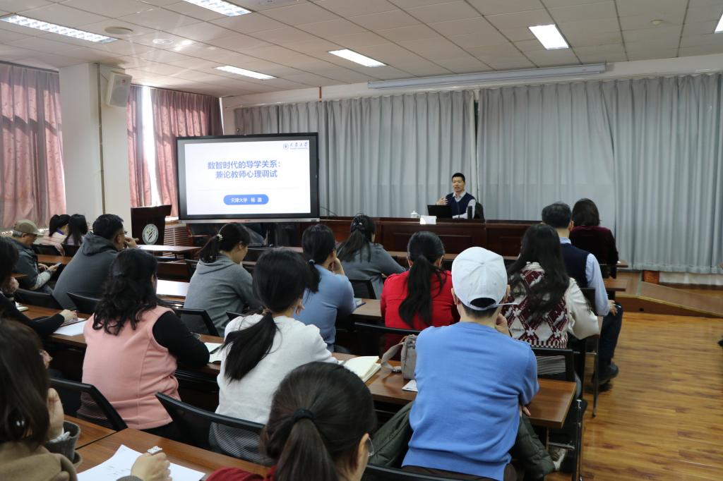 本站讯(通讯员 单一鸣)为深入贯彻落实艾弗森贝博ballbet官网第九次党代会精神,全面落实新时代立德树人工程,构建高质量和谐导学关系,近日,生命科学学院特邀天津大学心理健康教育中心副教授杨盈作题为《数智时代的导学关系:兼论教师心理调适》的专题讲座。学院领导班子及全体教师参加讲座。