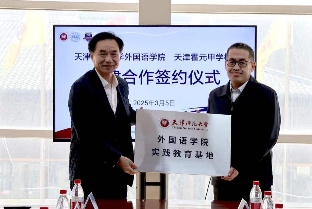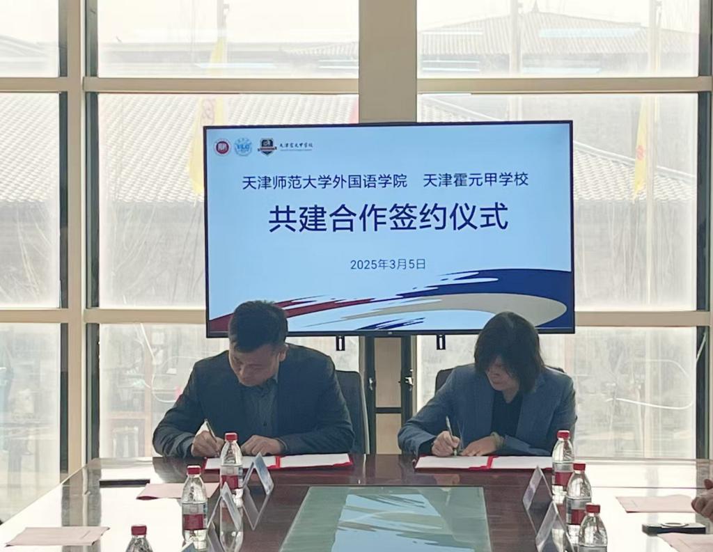 本站讯(通讯员 陈乾坤)3月5日下午,外国语学院与天津霍元甲学校合作共建签约仪式在天津霍元甲学校举行。学院党委书记田鹏,院长冀小婷,党委副书记、纪委书记苏笛,学院各系室教师代表,天津霍元甲学校校长申宗刚,学校相关领导及教师代表参加仪式,共同见证了双方合作开启新篇章。
