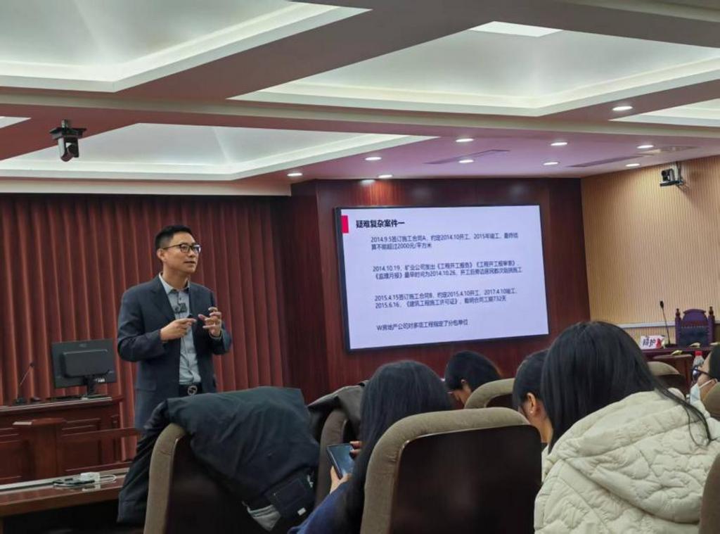 在讲座中,卢光荣律师为学生解读了律师代理复杂疑难案件中道与术的关系。他指出,作为一名律师,在处理案件过程中既要重“道”,坚守做事的指导原则,又要重“术”,注意做事的具体方式、技巧和方法,要做到道与术的统一。随后,他为各位同学分享了自己亲自办理的有关施工合同、设备采购合同、借款合同等领域的五个典型案例,并结合案例为同学们梳理和解析了每一个案件处理过程中的关键问题和争议焦点,并为同学们讲解了处理案件的过程中如何认定事实、适用法律,分享了自己在办案中的经验。作为校友,他勉励学院学生要坚守职业底线,作为法律人要“养一身正气,蓄满腔热血,破歪魔邪道”,要有推动社会进步的勇气和责任感,要自觉以事实为依据、以法律为准绳,学会在“法律中的现实”与“现实中的法律”寻找最佳切合点,在最大程度上实现当事人利益的最大化。