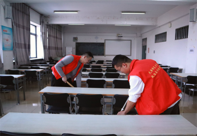 在兴文楼内,研究生志愿者以我为师生办实事为己任,以教室打扫活动作为志愿服务主体。他们分工明确,配合紧密,认真仔细地擦拭着每套桌椅,清扫着每一个角落的灰尘,用窗明几净的教室为同学们新学期的学习营造一个崭新干净的环境。志愿服务进一步增强了同学们对雷锋精神的认识,通过平凡小事,进一步传承和发扬雷锋精神,在为师生服务的行动中获得幸福感。