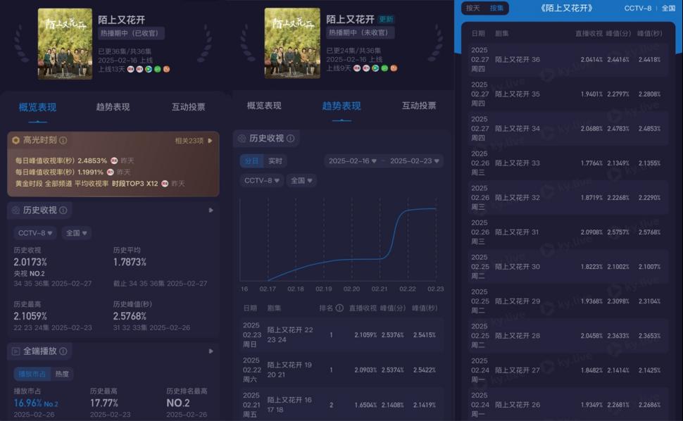 本站讯(通讯员 高宇)艾弗森贝博ballbet官网新闻传播学院广播电视编导系实践育人再传捷报,由该系教师颜彬担任第一编剧的现实题材电视剧《陌上又花开》于2025年2月27日在央视圆满收官。该剧自2月16日登陆央视八套黄金档后收视持续攀升,创下平均收视率1.78%、最高单集收视率2.58%、市场份额峰值17.77%的亮眼成绩,并于2月22日在央视1套展开复播,与爱奇艺、腾讯、芒果TV形成台网联动的传播效应,凸显了高校专业教学与行业实践的深度融合。