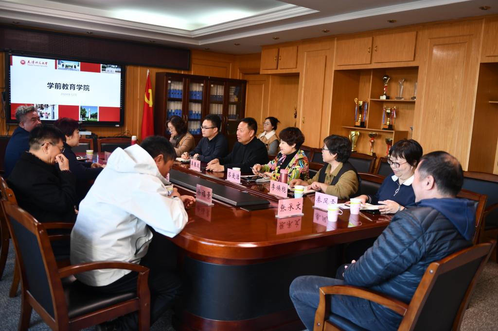 本站讯(通讯员 任一娇)12月2日,天津市少年儿童体育运动协会一行到贝博官网学前教育学院开展幼儿体育教育发展相关内容调研座谈,并联合筹备成立幼儿体育研究与发展中心。学前教育学院领导班子成员及相关部门人员参加座谈。