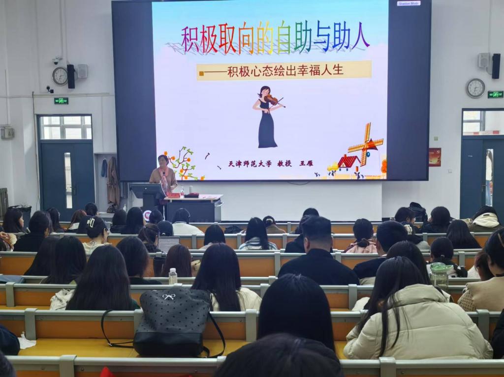 王雁教授从幸福的角度切入主题,以“我们理解中的幸福是什么”这一深刻问题开启了一场深入的讨论,同学们围绕幸福的内涵各抒己见,王雁教授也随之展开一系列的讲述。她引导同学们发掘自身优势、肯定自己和他人,为理解幸福带来全新的视角和感悟。接着,她通过引用案例和同学们互动,从心理学角度揭示心理问题产生的原因,并介绍了许多调节心理情绪的方法。她鼓励同学们在面对学业和人际关系等方面的压力时,学会合理调节心理情绪,以积极心态面对人生。