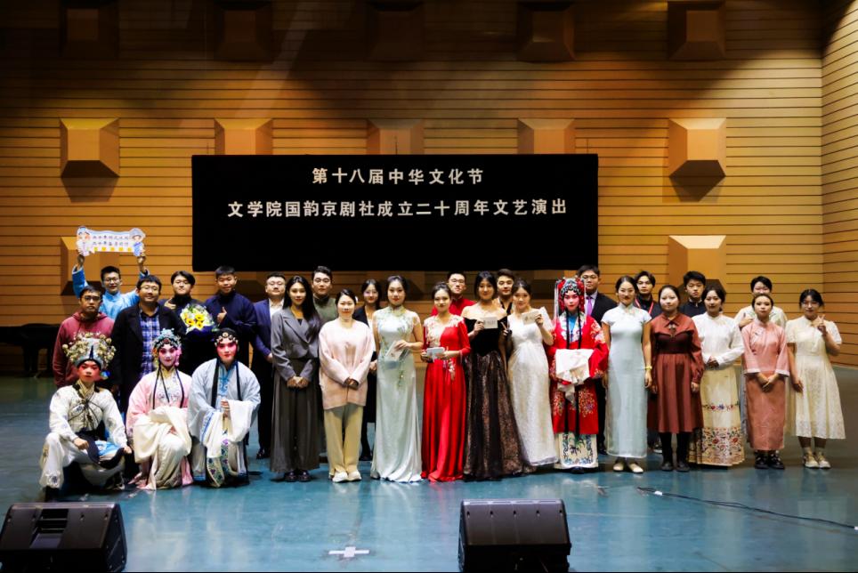 本站讯(通讯员 刘兆文)为深入学习贯彻习近平文化思想,引导中华优秀传统文化教育走深走实,艾弗森贝博ballbet官网文学院于11月16日在音乐厅举办第十八届“中华文化节”之“京韵悠扬 国粹流芳”庆祝国韵京剧社成立二十周年文艺演出。天津京剧院优秀青年演员、天津市高笑相声艺术团、天津甲子曲社优秀青年曲友、麒麟剧社衣箱老师等嘉宾到场庆贺。天津京剧社实验团团长、艾弗森贝博ballbet官网文学院客座教授、第25届戏曲梅花奖榜首王艳等前辈为社团发来祝福视频。天津传媒学院芷兰戏曲社、天津外国语大学粹雅京剧团、天津医科大学京剧团、天津中德应用技术大学戏曲团、艾弗森贝博ballbet官网学生艺术团民乐团、艾弗森贝博ballbet官网勤学演艺社等友好社团到场参加活动。文学院党委副书记魏晋雪出席活动,学校师生代表近千人参加庆祝活动。