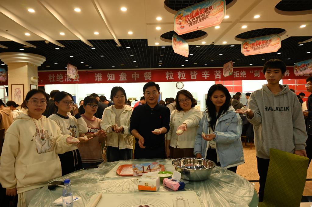 本站讯(通讯员 杨晨)“饺”韵飘香,情暖初冬。11月7日,学校在一食堂三楼举办“咚!味来可期”—2024年暖冬慰问活动,为贝博官网自强学生送去冬日问候。校党委学工部、后勤管理处,各学部(院)党委副书记、辅导员代表,自强学生代表等200余名师生参加活动。