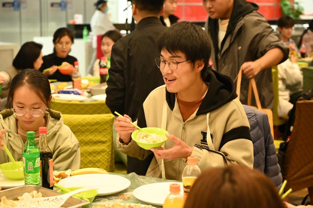 在食堂叔叔阿姨的帮助下,一盘盘热气腾腾的饺子出锅了,看着亲手制作的饺子端上餐桌,同学们拿起手中的筷子大口吃起来。“自己包的饺子就是香!这场活动让我感受到了家的温暖,更坚定了继续努力的信心。虽然我们暂时面临着一些经济上的困难,但学校和老师们一直给予我们关心关怀,鼓励我们积极生活,我想我们一定不能辜负学校对我们的期望,努力学习,成为学校的骄傲!”物理与材料科学学院马伟说道。