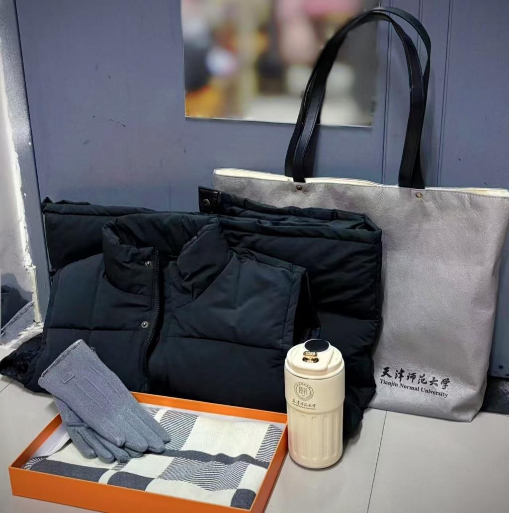 此次“暖冬活动”,学校精心为自强学生们准备了“立冬礼包”,包括暖冬棉马甲、围巾、手套、师大定制保温杯及手提包。在场的老师们带着满满的关怀和祝福将慰问品送到每一名同学手中。“感谢学校对我们的惦念和关怀,礼品实用又暖心,这个冬天被‘暖暖’包围住了~”外国语学院依丽米努尔·吐送托合提试穿“礼物”后感慨着。