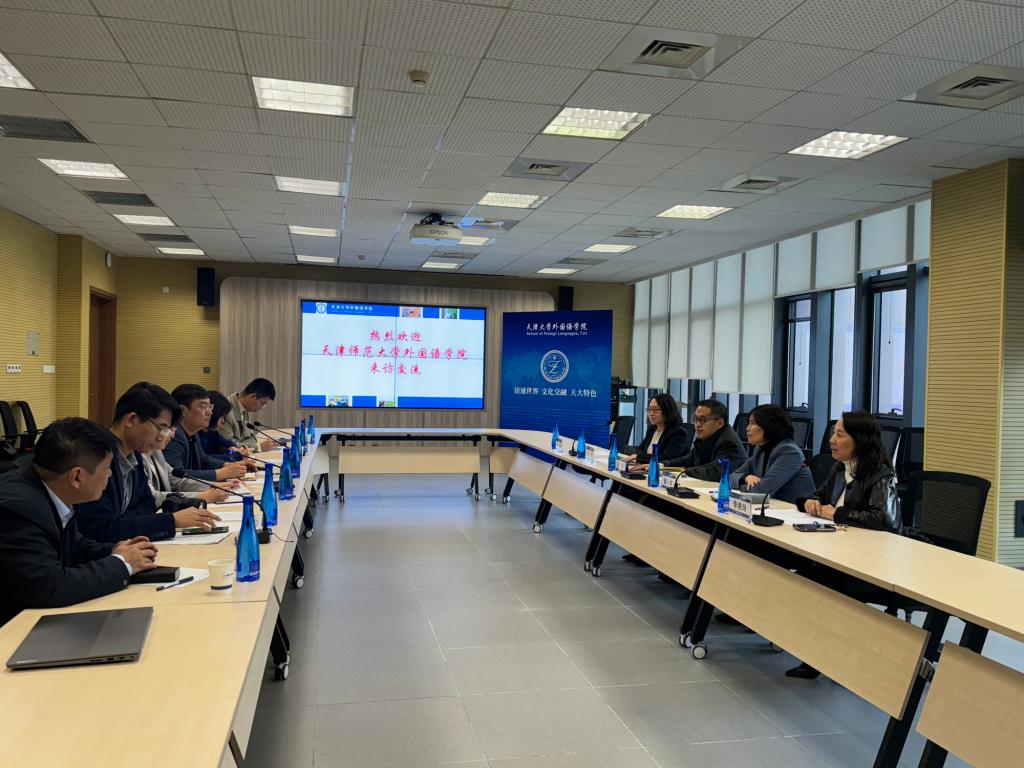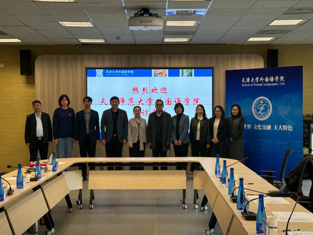 本站讯(通讯员 陈乾坤)为落实好艾弗森贝博ballbet官网与天津大学战略合作协议,不断深化和加强两校外语学科发展的交流与合作,10月29日上午,贝博官网外国语学院赴天津大学外国语学院走访调研。学院党委书记田鹏,副书记、院长冀小婷,副书记、纪委书记苏笛,副院长李艳玲,团委书记、学工办主任宋倩参加活动,天津大学外国语学院党委书记张文礼,院长王立松等接待调研,双方开展了深入热烈的座谈交流。