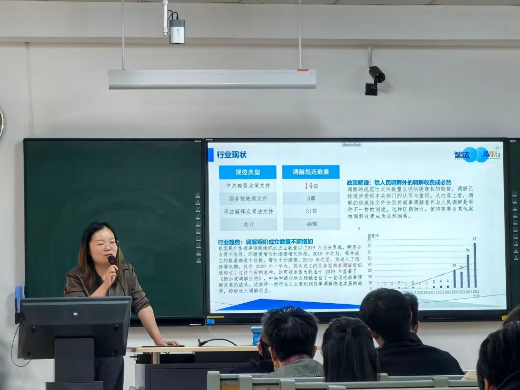 本站讯(通讯员 侯慧秀)日前,为进一步拓宽学生实习实践平台,提升就业能力,促进学生高质量就业,法学院邀请上海智调非诉讼纠纷调解中心来校开展实习生招募宣讲活动。此次活动由上海智调非诉讼纠纷调解中心创始人兼人力总监石珍主讲,天津商务负责人苏凤禹、运营经理石铭宇、运营主管陈雪锦等共同参与。