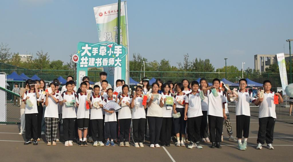 特色文创产品展区人头攒头、热闹非凡。各学部(院)充分结合自身学科特色,共设置28个文化互动体验展位。读书主题演出、书法体验、书签绘制、漆扇制作、舞狮表演、拓印剪纸、宫前中幡等现场体验活动更是吸睛无限。物理与材料科学学院2024级本科生吴可菲激动地说道:“和宿舍小伙伴边逛市集边参与互动游戏,我们选到心仪的课外读物的同时,还领略了不同学科与专业的独特魅力,开拓了眼界,增进了友谊。独具师大特色的校园文创纪念品,更是承载了我们的爱校荣校情怀。大学校园的文化生活丰富多彩,我爱校园市集,我爱天津师大!”
