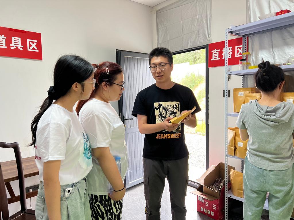 随后,实践团来到带货直播基地,主播们正通过镜头向全国各地的网友介绍着定西的农特产品。从金黄诱人的马铃薯及其深加工制品,到药食同源的养生药材;从香气扑鼻的花果茶,到鲜甜可口的瓜果蔬菜,每一种产品都承载着定西大地的丰饶与农户的辛勤汗水。参观过程中,学生们详细了解电商运营流程,调研直播需求及发展现状,积极参与直播互动环节,亲身体验现代农业与电商融合的魅力。虽然初次尝试略显生涩,但他们的热情和真诚却赢得了当地电商的认可与好评。