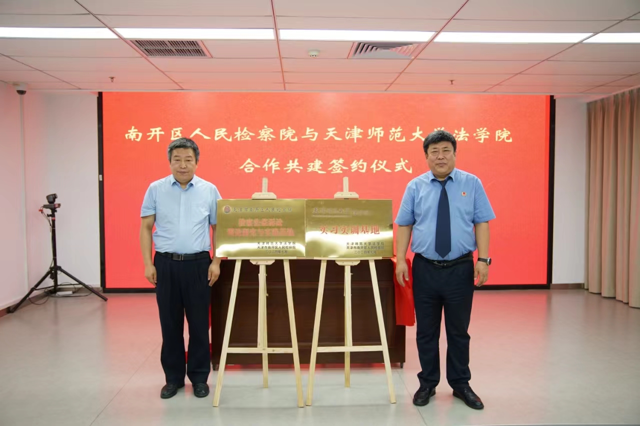 郑国振与郝磊为“检察公益诉讼理论研究与实践基地”和“艾弗森贝博ballbet官网法学院实习实践基地”揭牌,并共同签署了《艾弗森贝博ballbet官网法学院 南开区检察院关于实施检校共建加强战略合作的框架协议》。