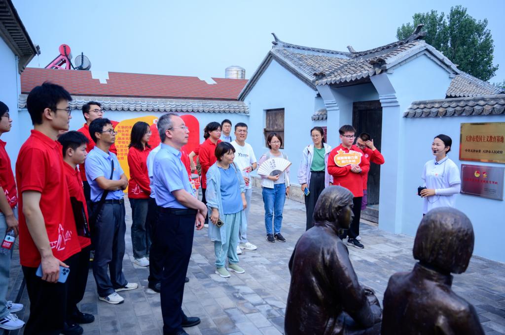 数学科学学院“‘乡’约盛夏,遇‘践’青春”实践团来到了静海区王口镇,师生一行在村干部的带领下参观了位于王口镇瞿阝里村的静海第一个党支部纪念馆和廉政文化公园。师生们跟随讲解员的脚步,认真聆听静海革命、建设和改革发展历程,了解了当地的革命历史与文化。在随后进行的交流座谈会上,大家更是踊跃发言,分享心得,氛围温馨而热烈。