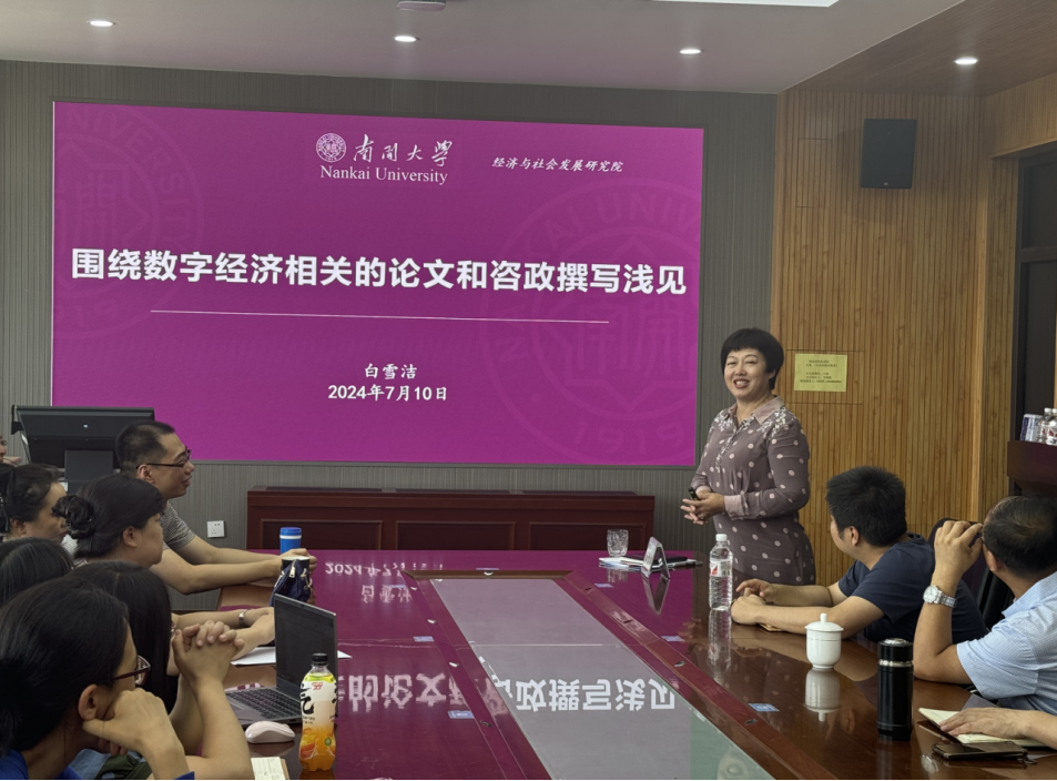 经济学院消息(通讯员 刘洋)近日,经济学院邀请南开大学英才教授,博士生导师,国家社科重大项目首席专家,经济与社会发展研究院副院长白雪洁教授做客经济学院学术讲坛,围绕数字经济相关论文和咨政撰写与学院教师展开深入交流。讲座由院长吕景春教授主持,学院全体教师参加讲座。