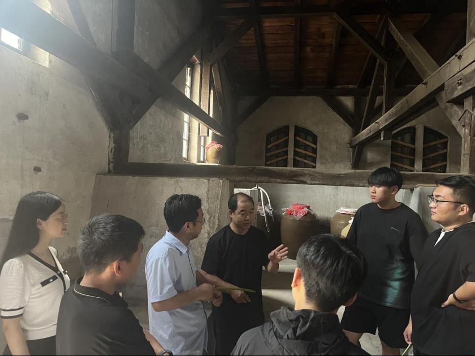 师生们来到独流镇著名的百年酒厂,这里不仅有悠久的历史和深厚的文化底蕴,更以其独特的酿造工艺和卓越的产品品质赢得了广泛赞誉。在酒厂负责人的陪同下,师生们参观了酿酒车间、酒窖和品鉴室等,深入了解了白酒的酿造过程和文化内涵,感受到岁月沉淀下的醇厚与芬芳。此次参观不仅让师生们对白酒文化有了更深刻的认识了解,也激发了同学们对天津本土优秀传统文化的热爱之情。