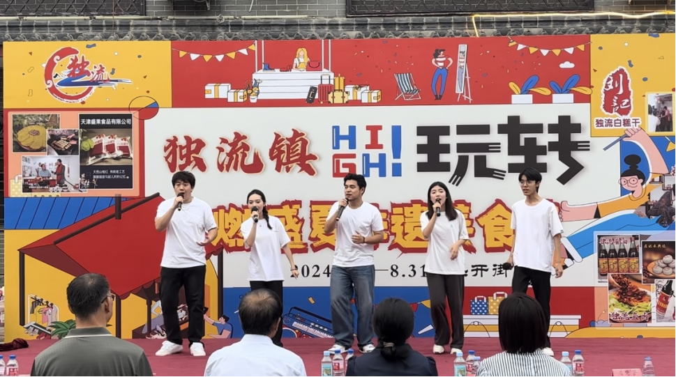 在“HIGH燃盛夏”非遗美食节演出中,同学们通过艺术的表现形式传递正能量、弘扬主旋律、丰富群众精神文化生活。在演出过程中,师生们与现场观众积极互动、共同参与,营造出了浓厚的文化氛围和浓浓的乡土情怀,展现了音影学子极佳的艺术才华和良好的精神风貌,为独流镇的群众带来了欢乐和温暖,进一步提升了城市治理的软实力和文化内涵。
