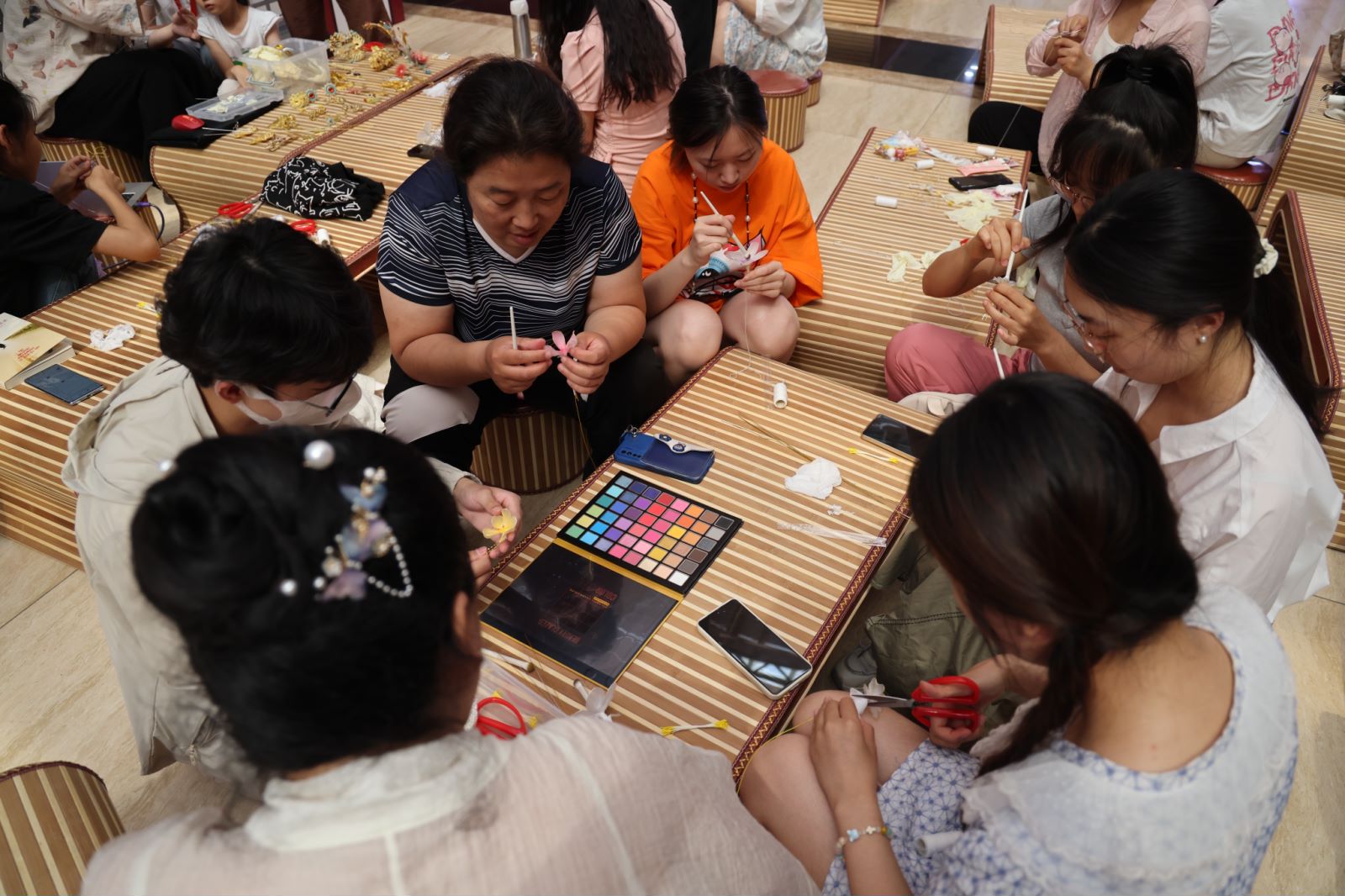 6月2日中午,在图书馆A区一楼举办“粉黛春秋·点绛唇——中国古典妆造复原技艺讲座”。讲座特邀青年杰出中华古典妆造造型师、摄影师、非遗手艺人张凯瑜,以中华古代历史和传统文化为线索,讲解古典妆造复原技艺,并实际演练古典妆造复原技艺,现场体验古典妆造饰品制作。