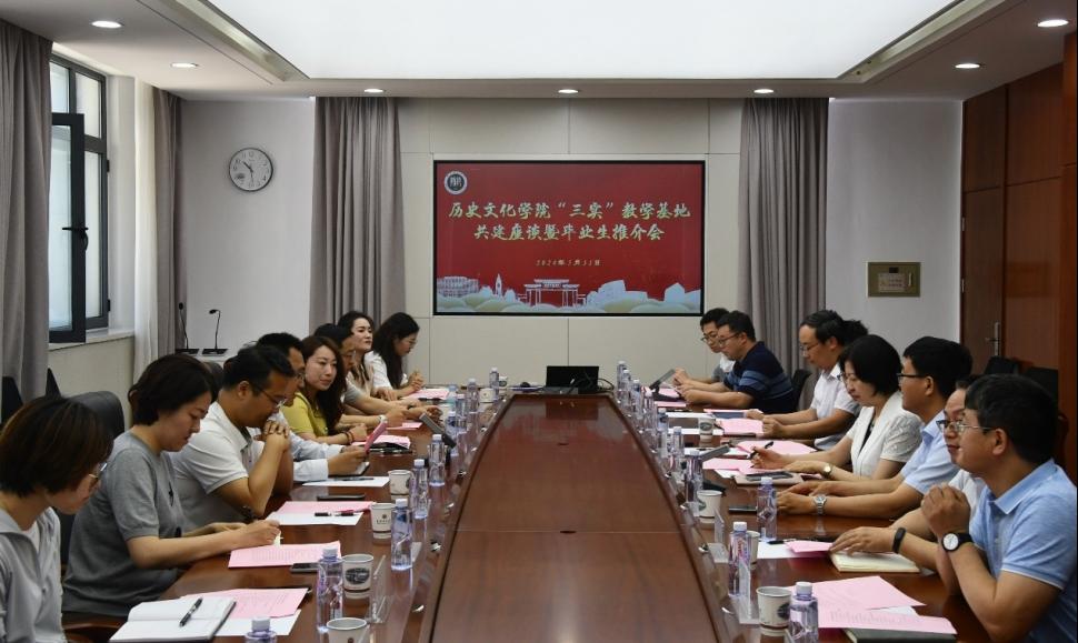 历史文化学院消息(通讯员 晏莉)历史学联合党委在毕业生“就业百日冲刺”阶段,将毕业生去向落实同学生实习实训实践培养共同谋划,于5月31日召开历史文化学院“三实”基地共建座谈会及毕业生推介会,天津博物馆、天津文化遗产保护中心、天津保税区等十三家合作单位代表、历史文化学院全体领导班子成员、各系主任、基地联系教师、就业事务辅导员参加会议。