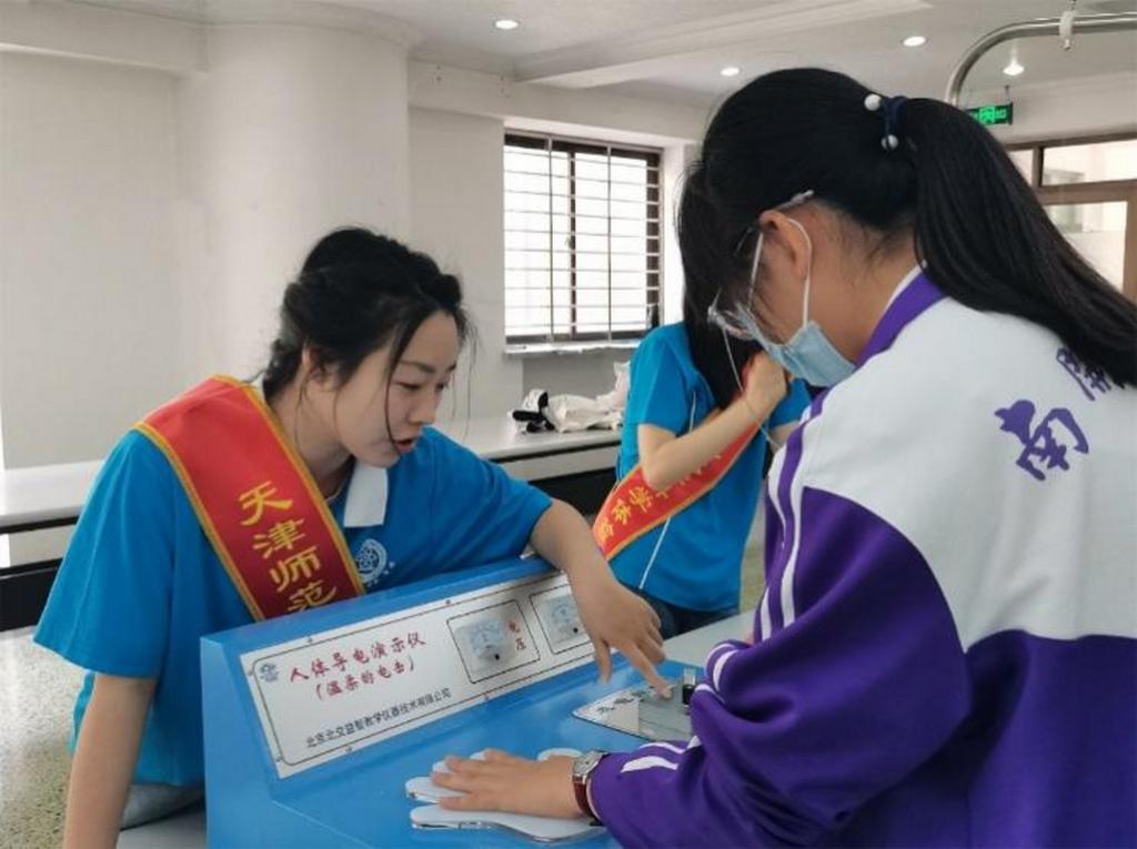 物理与材料科学学院消息(通讯员 郝健强)物理与材料科学学院物理学本科生第一党支部始终秉承科普思政育人理念培养党员干事创业能力,不断加强党支部建设,教育引导党员争当先锋、再立新功。今年全国科技活动周期间,党支部与大江路小学、南开中学、蓟州区东施古镇初级中学、西青区恒益隆庭社区开展了“大手牵小手,快乐科技行”科普实践活动。全体党员穿梭在场馆、学校、社区之间,以“小老师”的身份进行了4站科普实践活动,掀起中小学生物理科普学习热潮,将科普思政打造成党支部服务人民群众的亮丽名片。