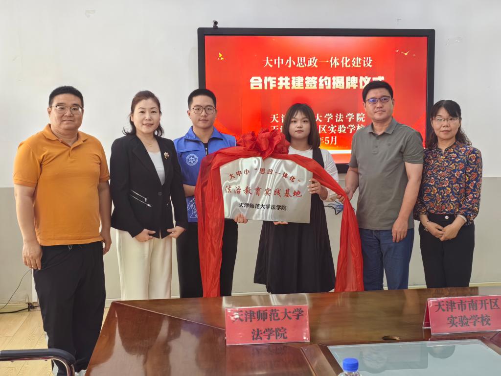 法学院与南开区实验学校共同签署了合作共建协议书,并正式揭牌大中小“思政一体化”法治教育实践基地,标志着双方在法治教育和爱国主义教育领域将开展更为紧密和深入的合作,共同致力于提升中小学生的法治素养和爱国情怀。