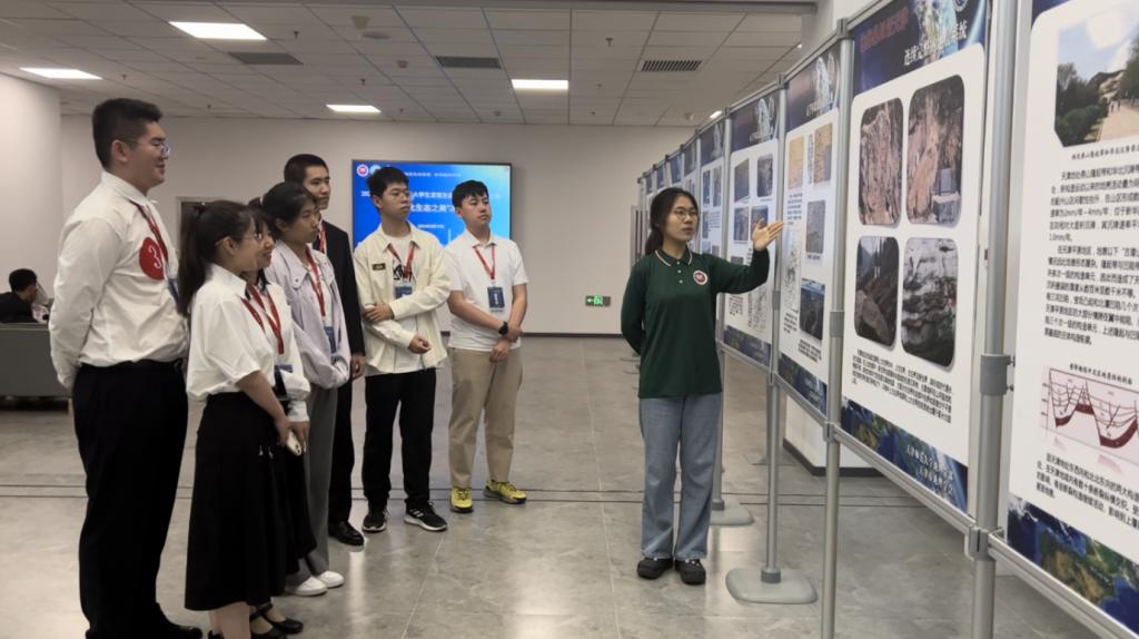 地理学部消息(通讯员 巴增胜)“原来我们脚下的土地有这么多故事啊,那些岩石和土壤都经过了亿万年的变迁,真是太神奇了。”“我也想成为一名地质学家,去探索更多的未知世界。”天津市第38届科技周来临之际,恰逢2024 绿创——京津冀大学生发现生态之美创新创意大赛“转化生态之美”决赛,5月19日,京津冀部分高校师生代表来到艾弗森贝博ballbet官网地理学部观看“沧海桑田话天津”科普展览,开展了一场别开生面的研学实践活动。在师大教师的讲解下,参加活动的学生们就其中的展板内容展开了热烈交流,现场互动频繁、气氛活跃。
