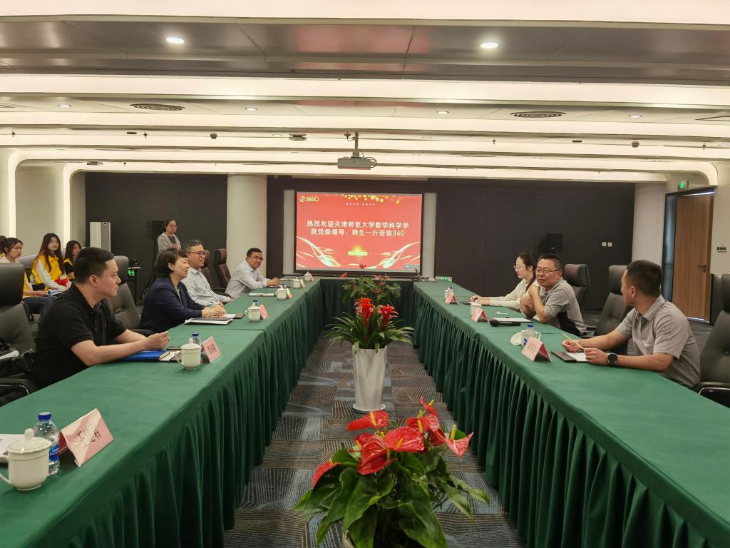 数学科学学院消息(通讯员 郭小玮 王建君)5月10日上午,数学科学学院党委书记张宁,党委副书记、院长常慧宾,党委副书记彭永刚,系主任、辅导员及学生代表赴360天津分公司开展“访企拓岗”工作。360集团副总裁荣华、360天津分公司副总裁胡军宝、青年人才发展经理姜悦、第十三党支部(天津)书记孙悦出席本次活动。