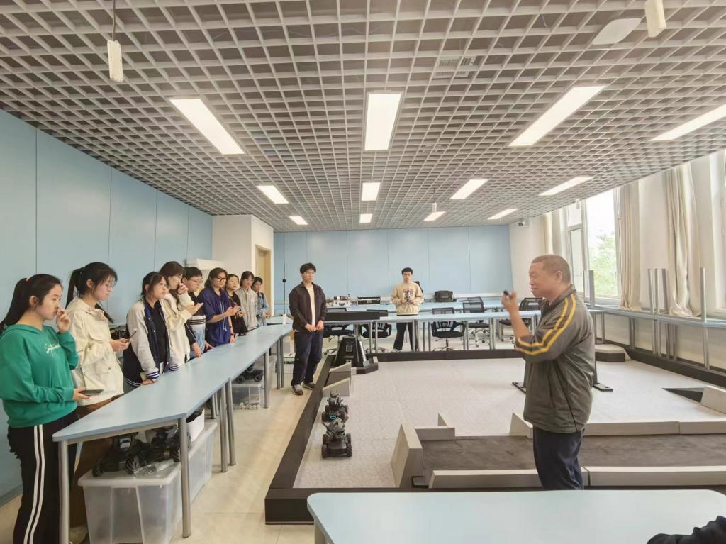 在刘凯和朱壮丽的带领下,学院师生分别参观了航模实验室、人工智能教室、开源硬件实验室、创客实验室、跨学科学习实验室、教学技能实验室和虚拟现实实验室等科技创新实验室和教学科研实训场地,在参观过程中聆听讲解、询问原理、动手实操,并在户外观看了无人机飞行展示。
