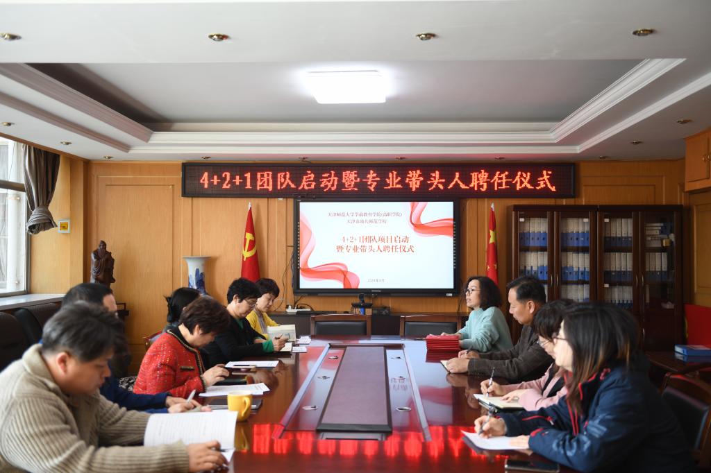 学前教育学院消息(通讯员 贾佳琪 贺溪)为深入学习贯彻党的二十大精神和习近平总书记考察天津重要讲话精神,践行“四个善作善成”重要要求,落实学院巡察整改工作,把党中央的关心和重视转化为加快推动教师队伍建设的务实举措,打造一批高水平职业院校教师教学专业团队,示范引领高素质“双师型”教师队伍建设,3月22日,由学前教育学院教务科组织,学院举行“4+2+1”团队项目启动暨专业带头人聘任仪式。
