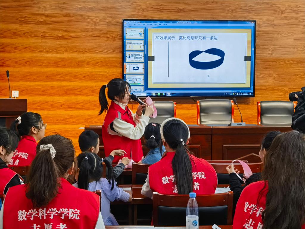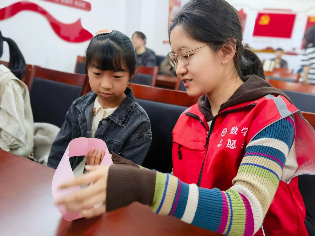 “青马”志愿者们为社区居民和外来务工子女带来了非常丰富有趣的活动。通过“趣味算数”和“数学小讲堂”,志愿者们引导孩子们探索数学的奥秘,激发他们对数学的兴趣和好奇心。志愿者们通过引入工业中的传送带、磁带原理以及莫比乌斯带的概念,让孩子们从实际生活中找到数学的影子,通过亲身体验和互动感受数学的魅力。此外,孩子们通过参与“猜数谜”“扑克速算”“填数独”等数学闯关游戏,在游戏中学习,锻炼了逻辑思维,提高了解决问题的能力,让数学变得更加有趣和富有挑战性。