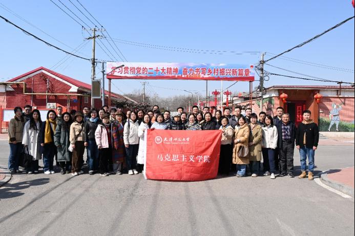 马克思主义学院消息(通讯员 金明昊)为纪念学校思政课教师座谈会召开五周年,深入学习贯彻习近平总书记视察天津重要讲话精神,推动习近平总书记视察天津重要讲话精神“进教材、进课堂、进头脑”,高站位、高质量推进思政课教学,3月9日,马克思主义学院师生赴西青区辛口镇第六埠村举行研习交流会。